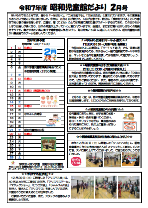 2/6(金) 開館時間変更のお知らせ(13:30-17:00)